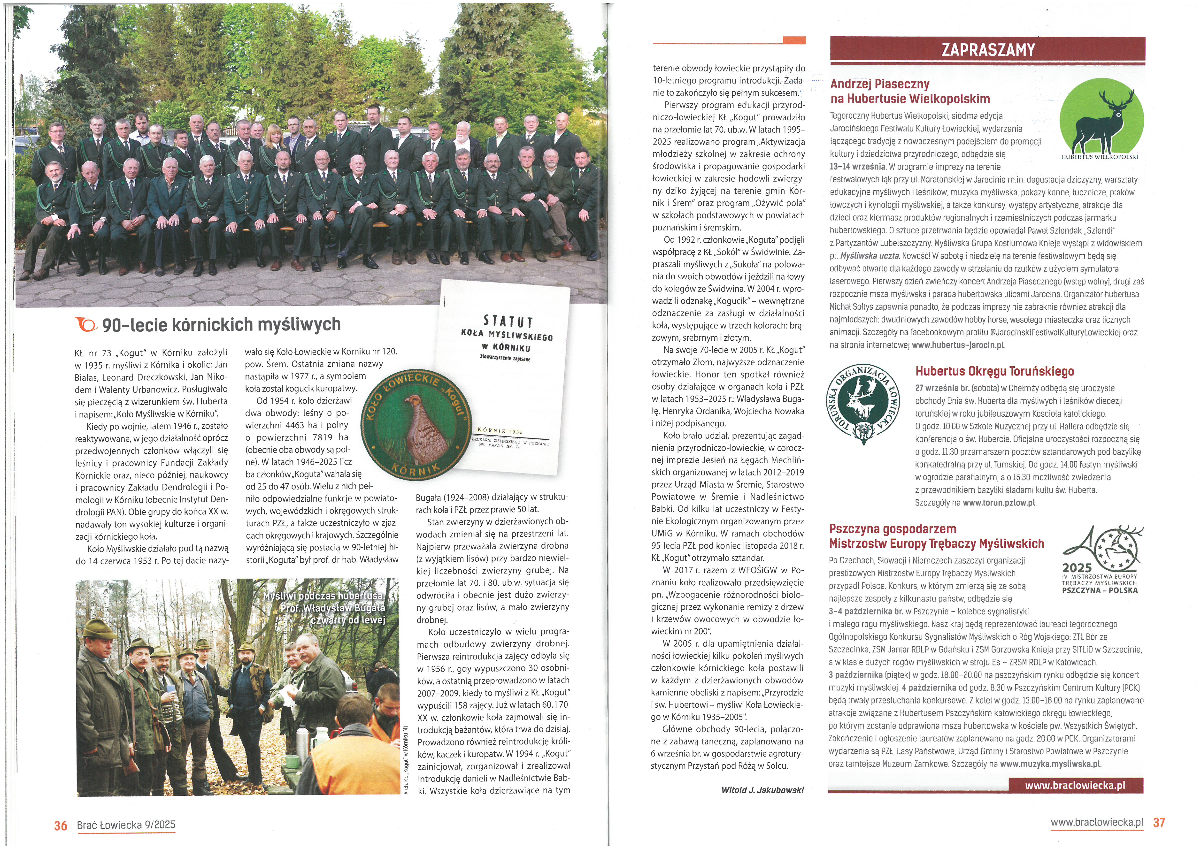 Obchody 90 leciaOpublikowano: 12 październik 2025 | Drukuj | E-mail | Odsłony: 49 2025-09-06 Artykuł w Braci Łowieckiej " DARZ BÓR "